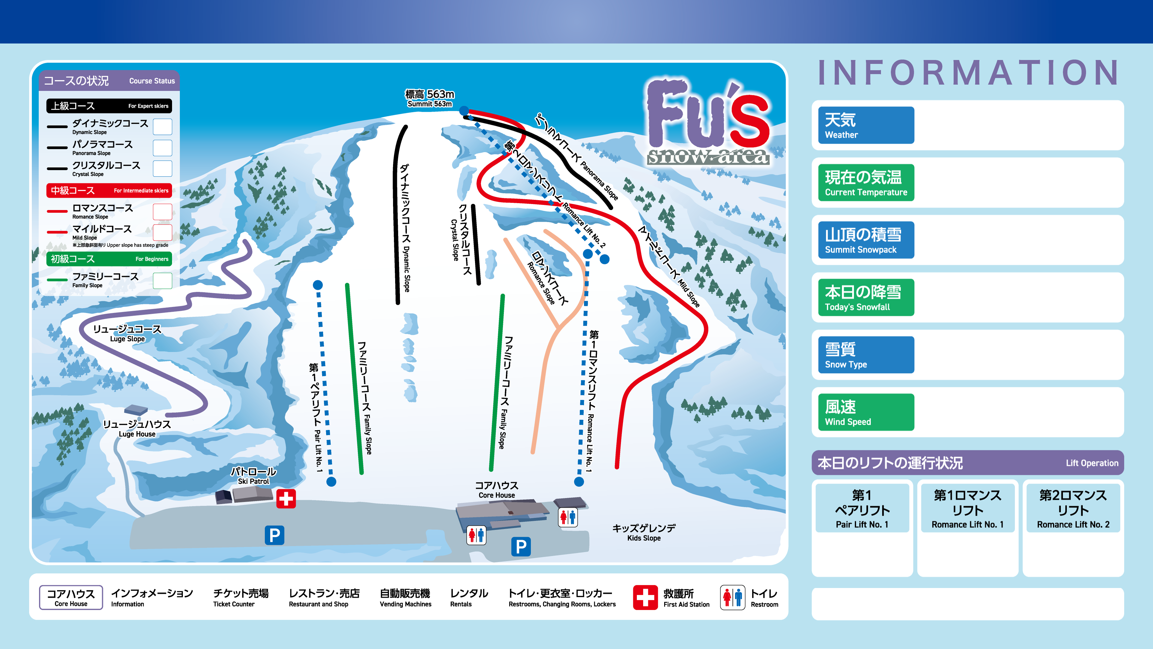 積雪不足により滑走可能コースは限定となっております。小石、ブッシュなど露出部分もございますのでご注意ください。 営業時間9:00~21:00